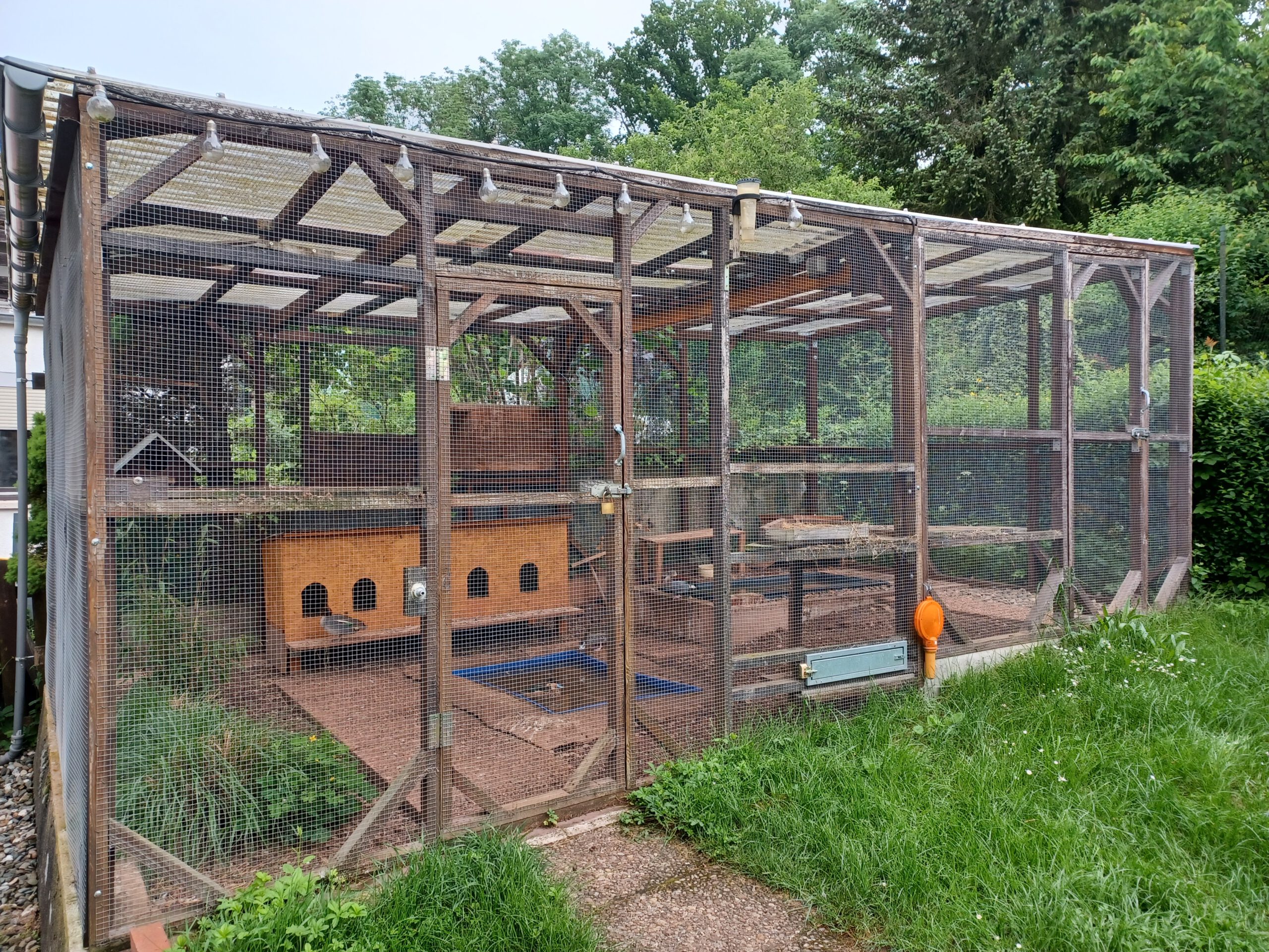 So vergangen etliche Jahre ohne eigene Enten. Eins schönen Sonntages fuhr ich mit meiner Familie in den Leipziger Zoo, dort sah ich das erste mal eine wirklich extrem kleine, robuste aber auch wunderschön gezeichnete Ente, die Rotschulterente. Der Tierpfleger dort erzählte mir nur positives über diese Entenrasse, und so kam es, das ich wiederum im eigenen Garten mit wiederum den gleichen Nachbarn diese Entenrasse in einer selbst gebauten, äußerst primitiven Voliere zu halten und zu züchten begann. Parallel dazu baute ich mir im Jahr 2015 / 2016 eine neue Voliere an einem neuen Platz in meinem kleinen Garten. Die Voraussetzungen waren nun anders, die Enten wesentlich kleiner und leiser mit viel weniger Hinterlassenschaften (Kot). Selbst meine Nachbarn hatten nun nichts mehr dagegen einzuwenden.